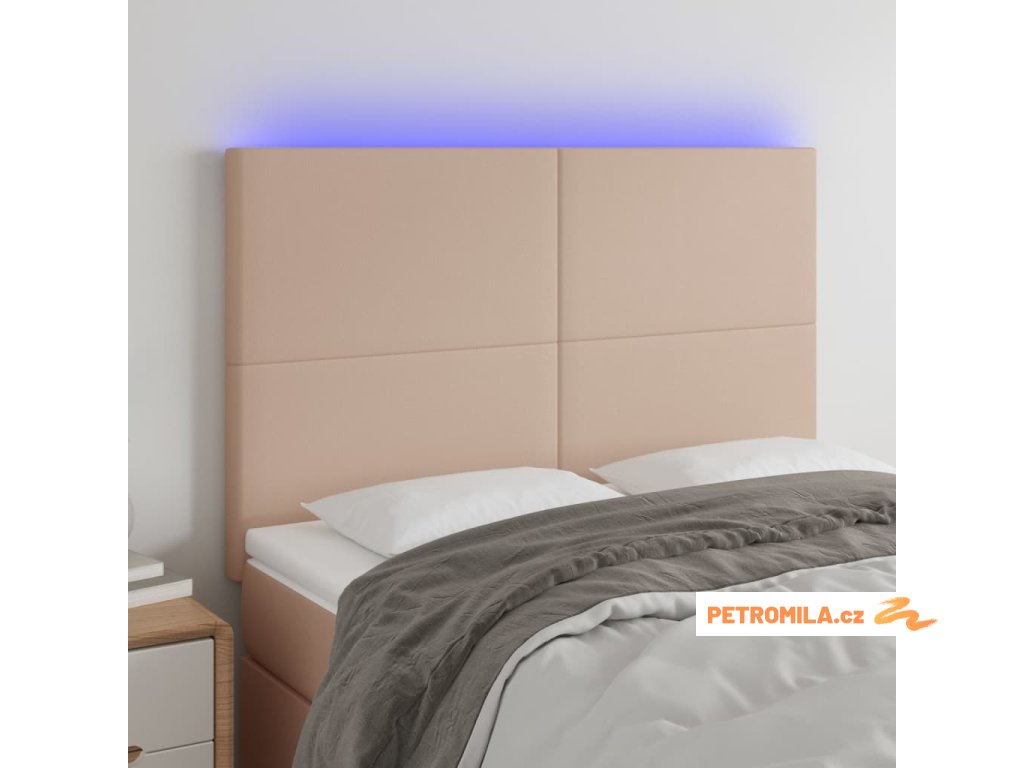 Čelo postele s LED cappuccino 144x5x118/128 cm umělá kůže