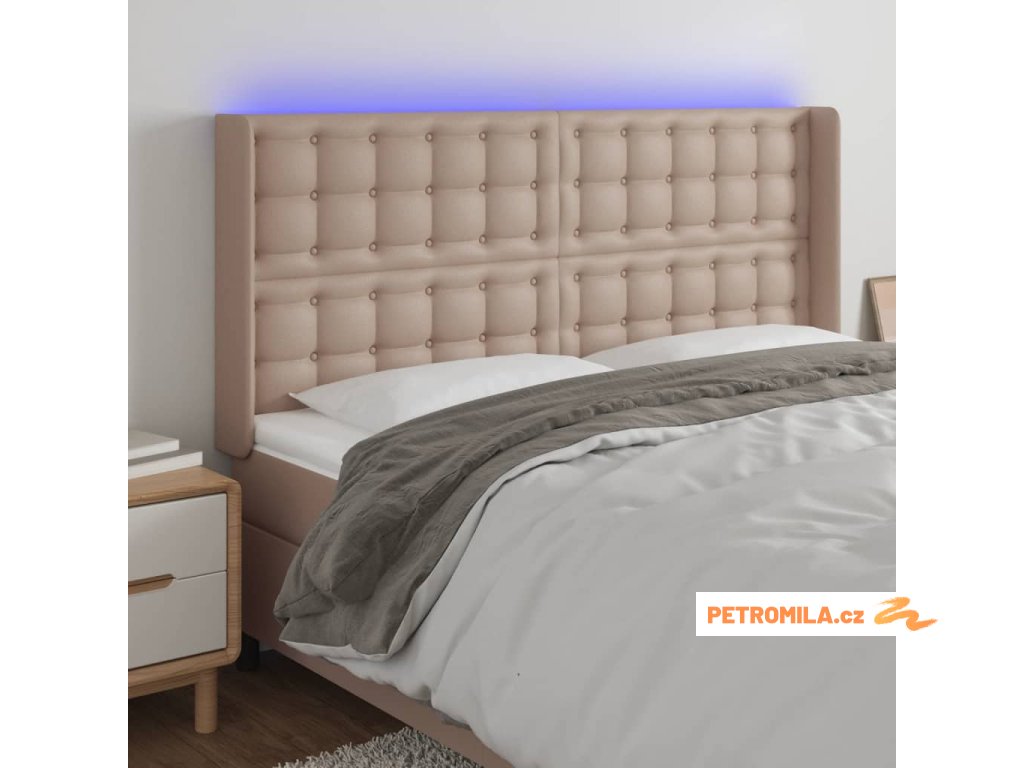 Čelo postele s LED cappuccino 147 x 16 x 118/128 cm umělá kůže