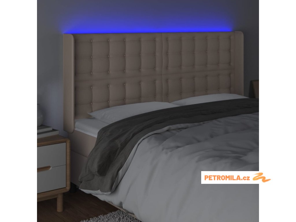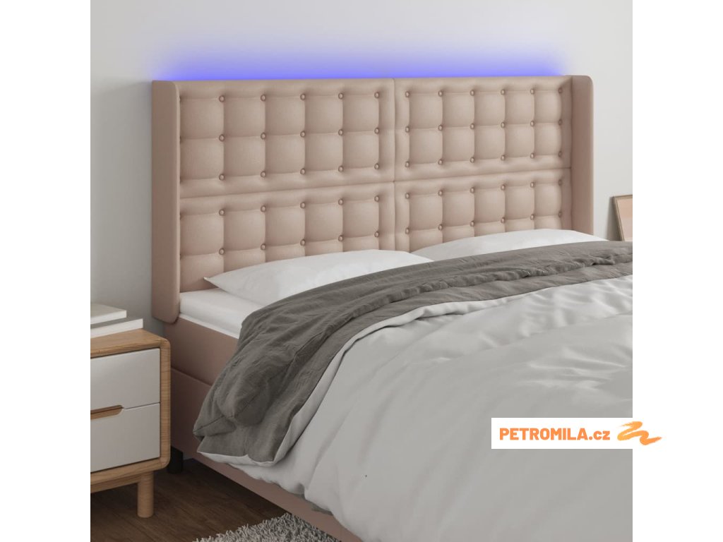 Čelo postele s LED cappuccino 163 x 16 x 118/128 cm umělá kůže