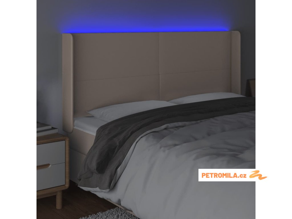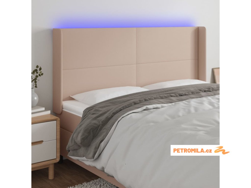Čelo postele s LED cappuccino 183 x 16 x 118/128 cm umělá kůže