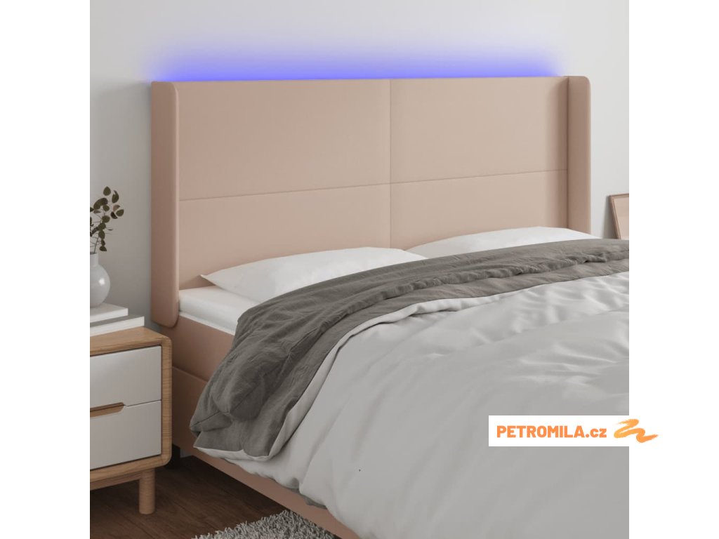 Čelo postele s LED cappuccino 203 x 16 x 118/128 cm umělá kůže