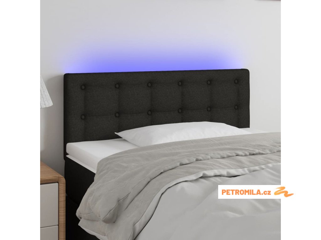 Čelo postele s LED černé 100x5x78/88 cm textil