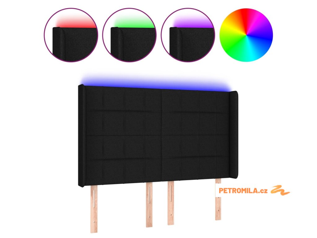 Čelo postele s LED černé 144x5x118/128 cm textil