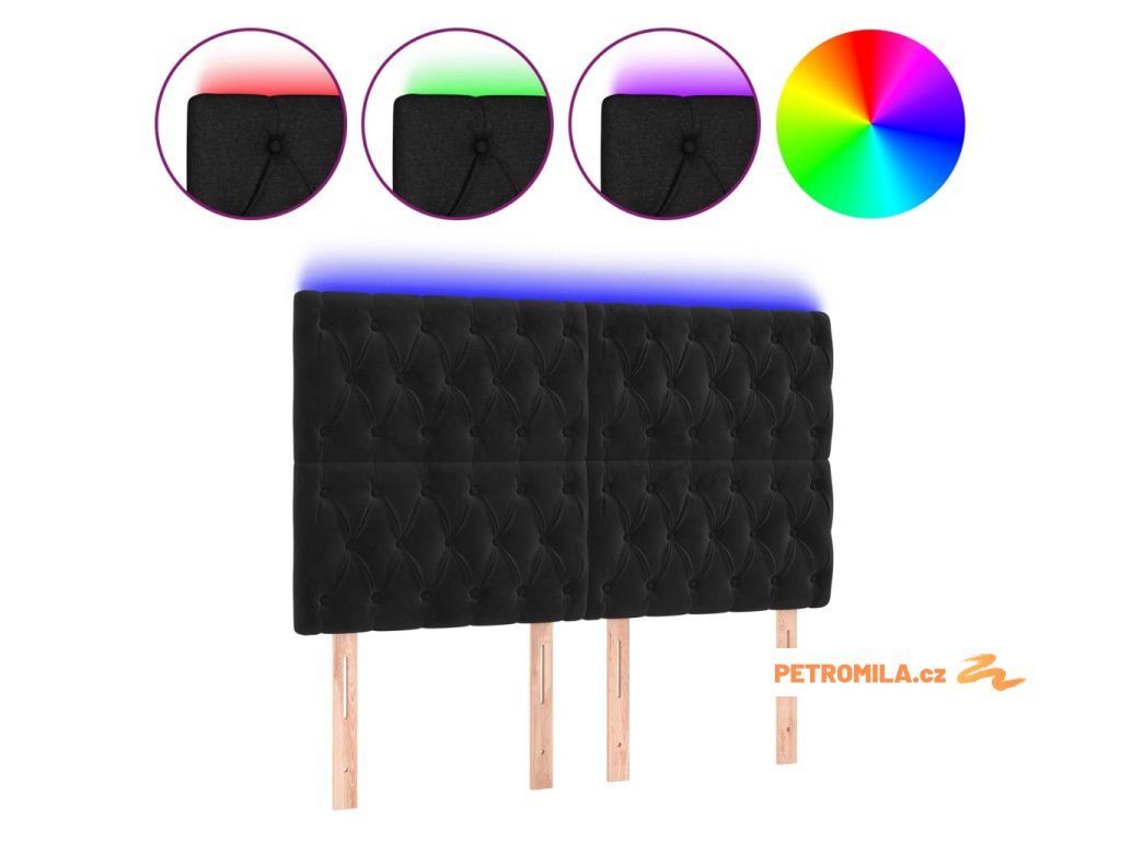 Čelo postele s LED černé 144x7x118/128 cm samet
