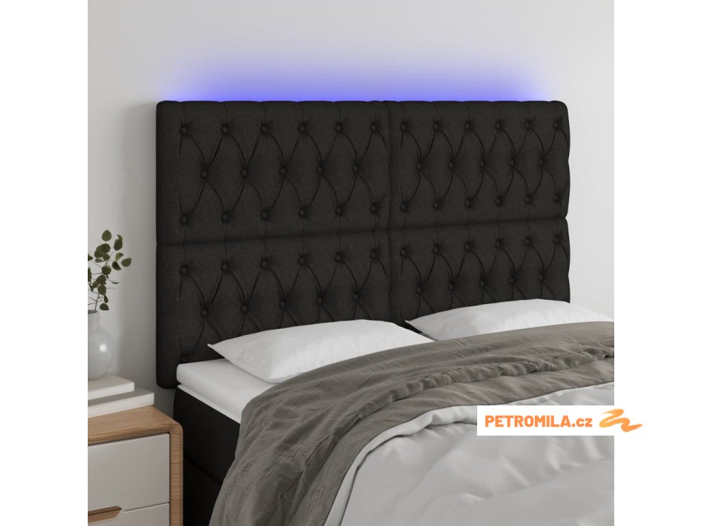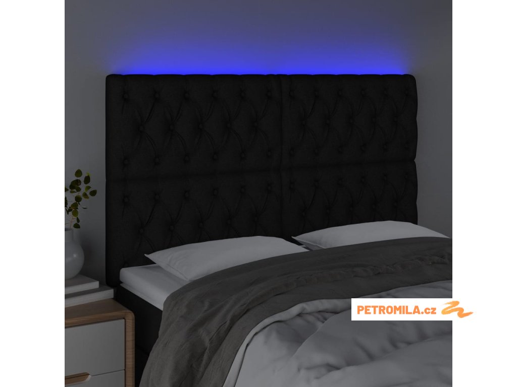 Čelo postele s LED černé 144x7x118/128 cm textil