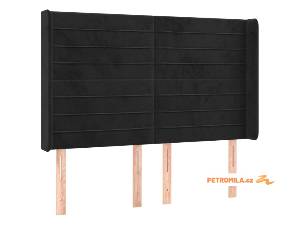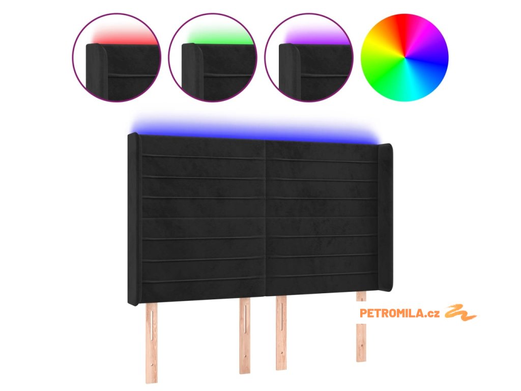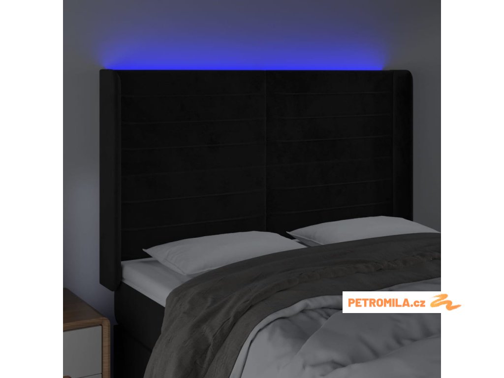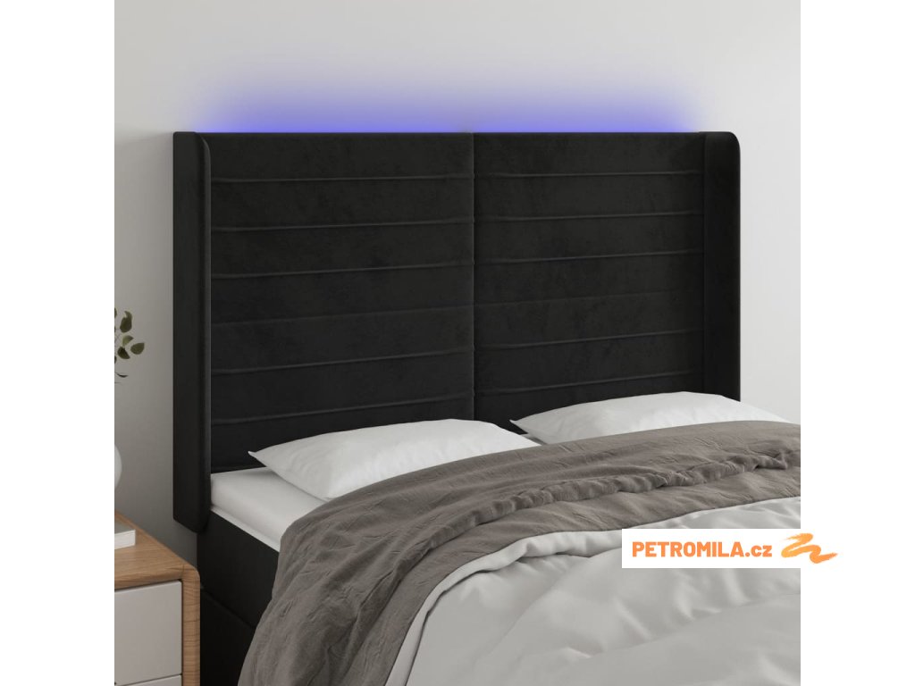 Čelo postele s LED černé 147 x 16 x 118/128 cm samet