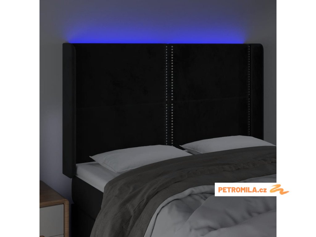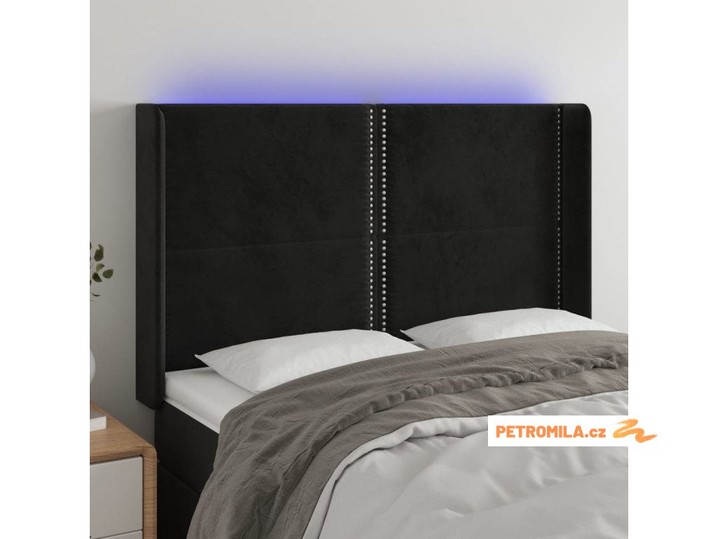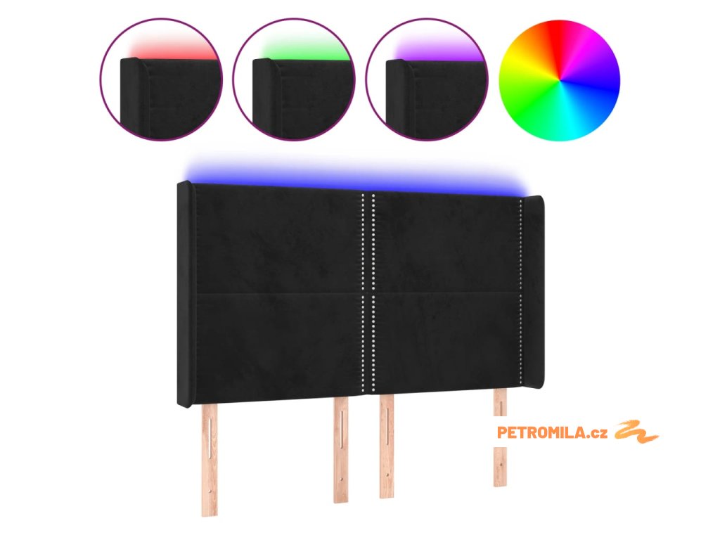 Čelo postele s LED černé 147 x 16 x 118/128 cm samet