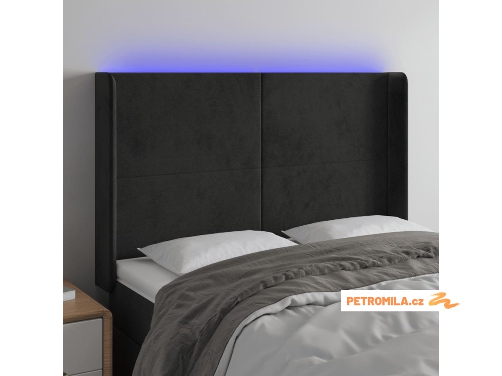 Čelo postele s LED černé 147 x 16 x 118/128 cm samet