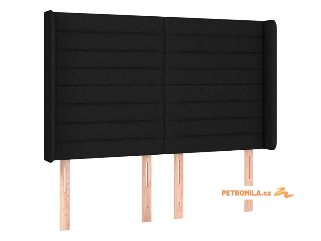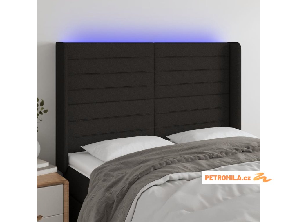Čelo postele s LED černé 147 x 16 x 118/128 cm textil