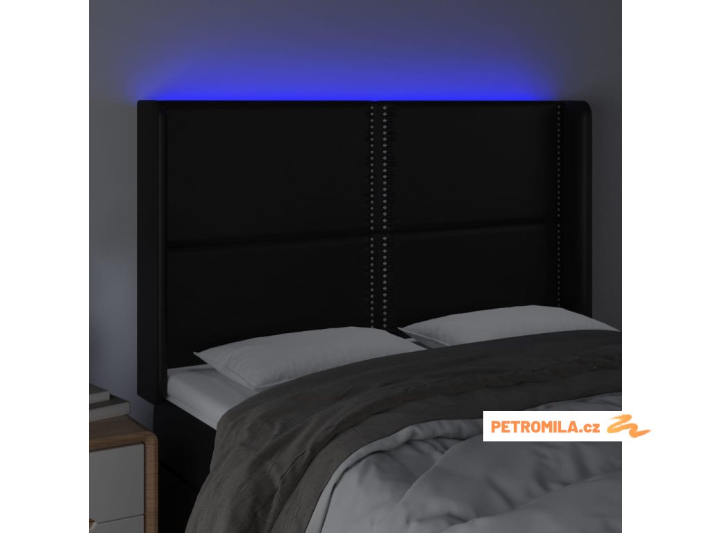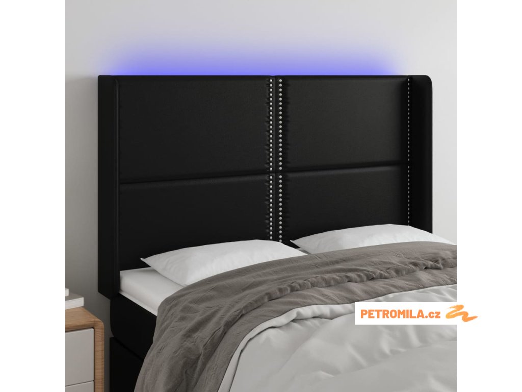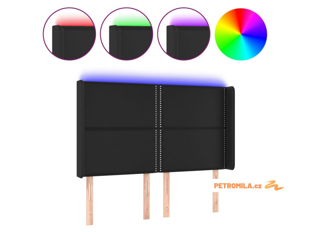 Čelo postele s LED černé 147 x 16 x 118/128 cm umělá kůže