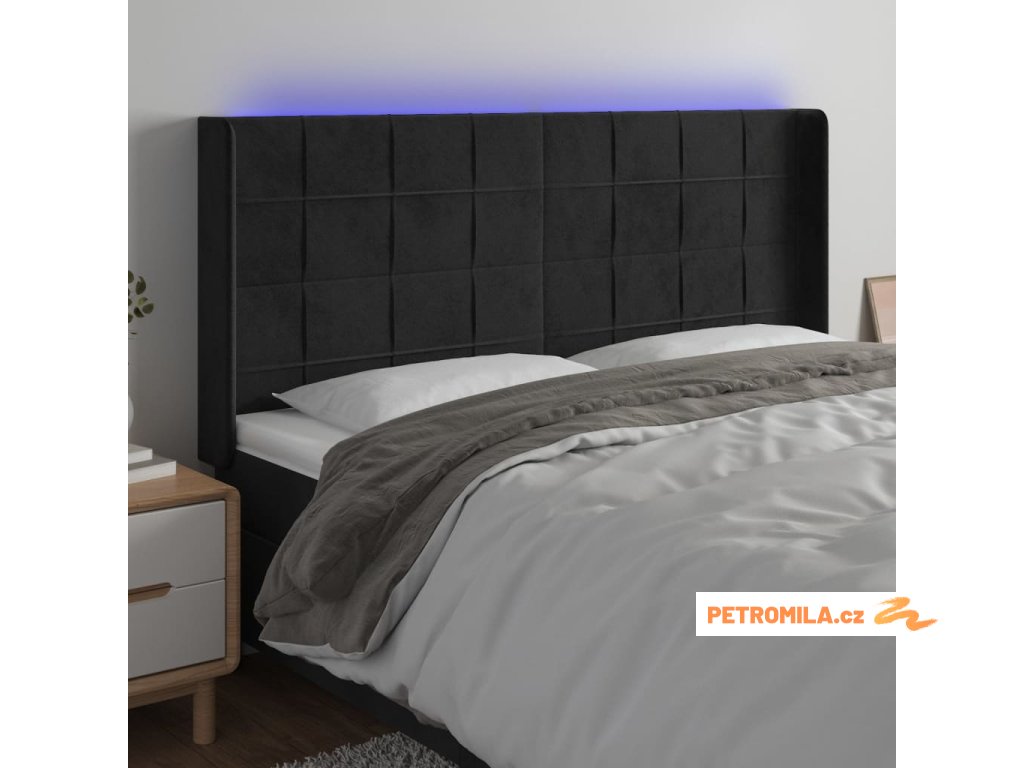 Čelo postele s LED černé 163 x 16 x 118/128 cm samet