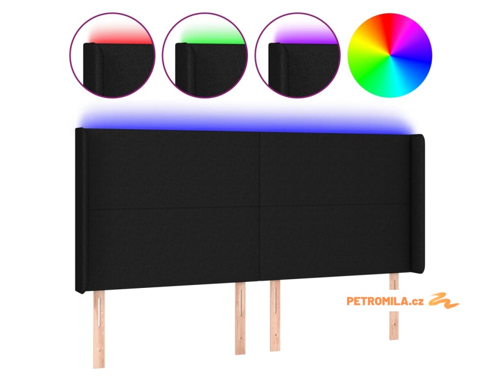 Čelo postele s LED černé 163 x 16 x 118/128 cm textil