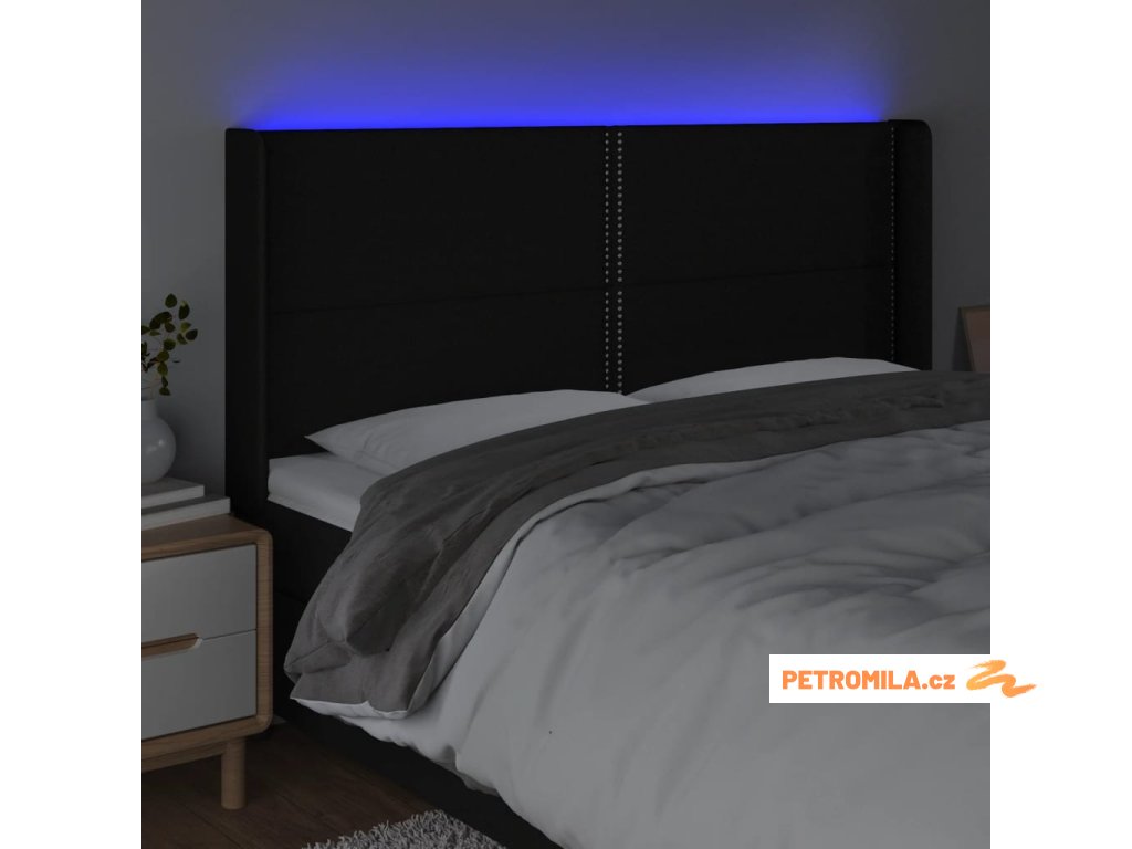 Čelo postele s LED černé 163 x 16 x 118/128 cm textil