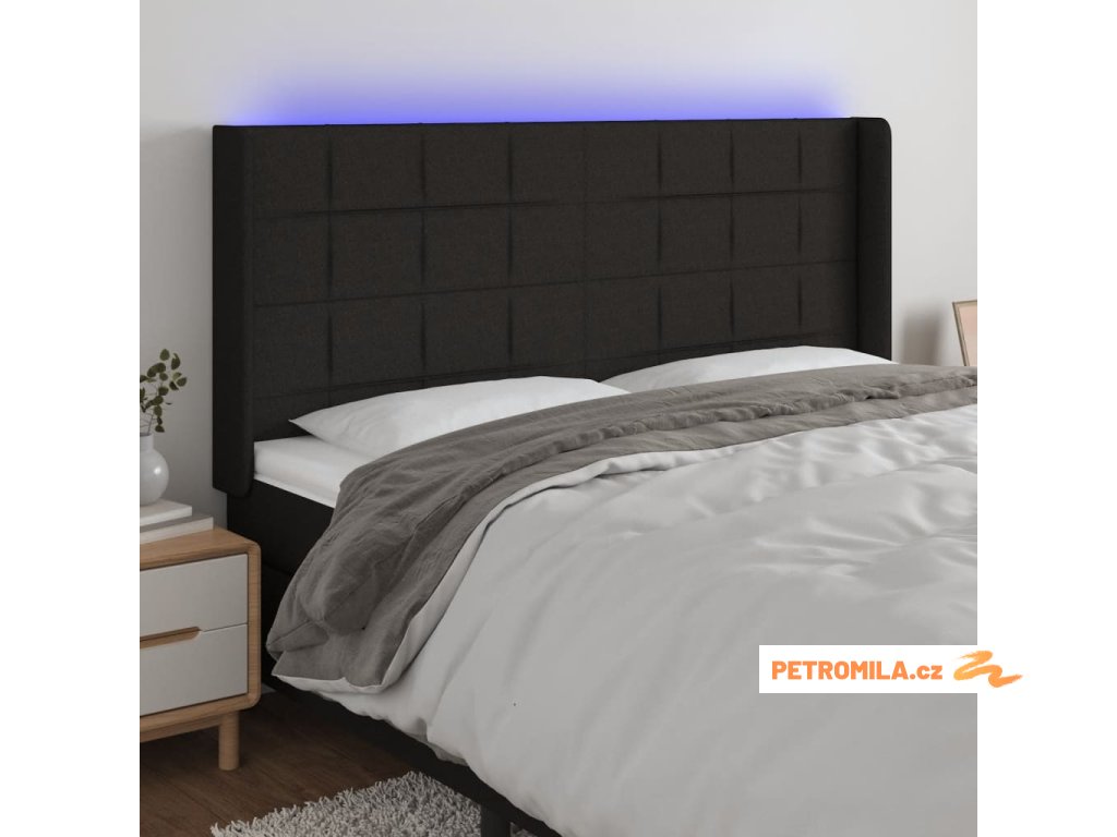 Čelo postele s LED černé 163 x 16 x 118/128 cm textil