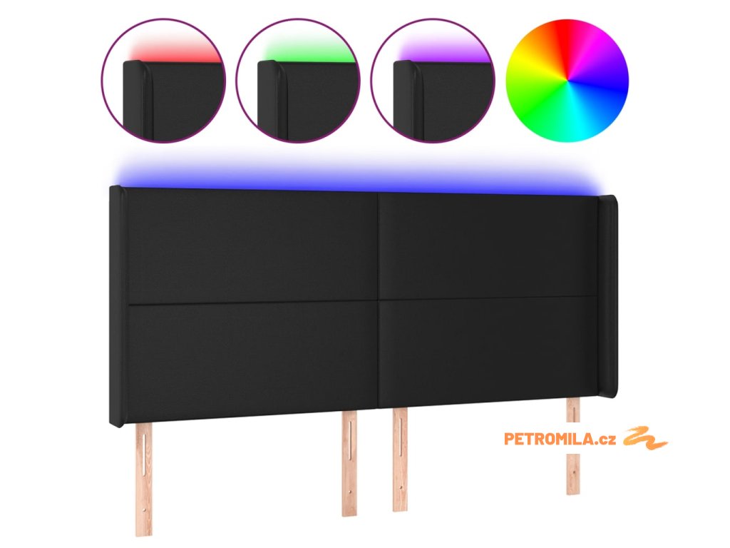 Čelo postele s LED černé 163 x 16 x 118/128 cm umělá kůže
