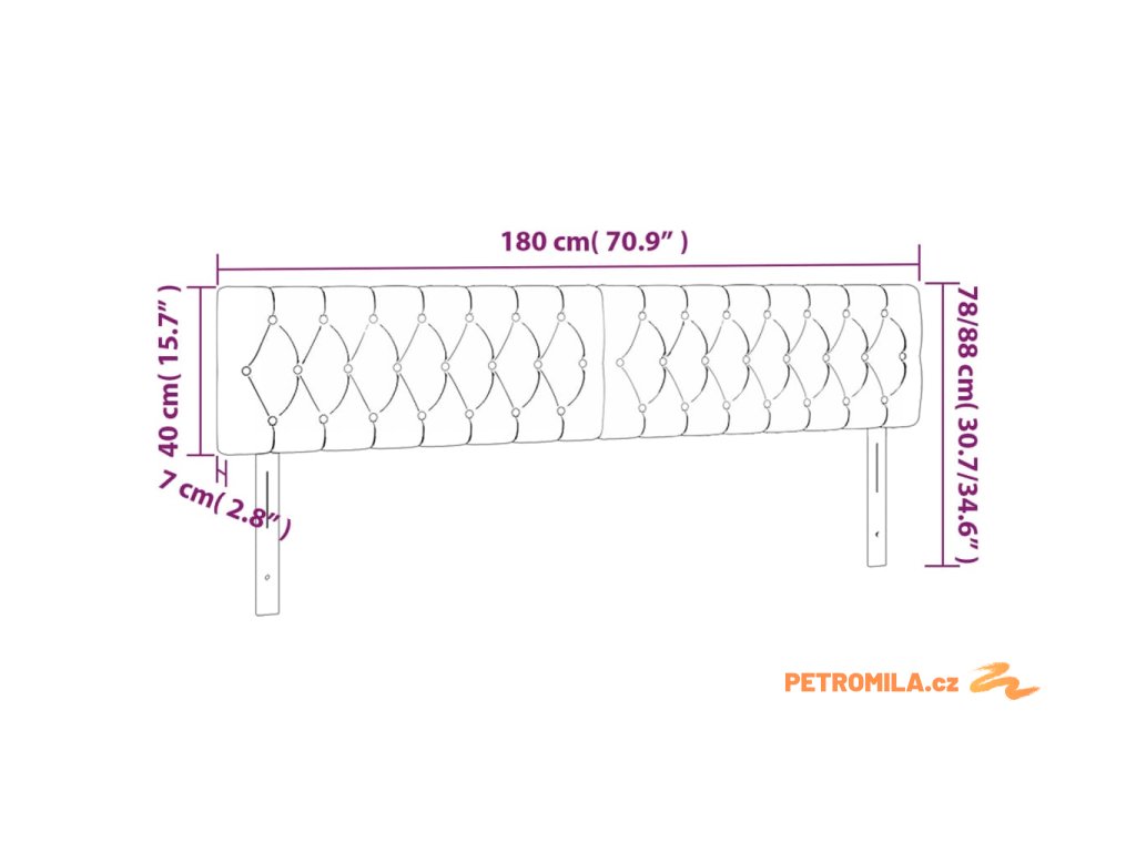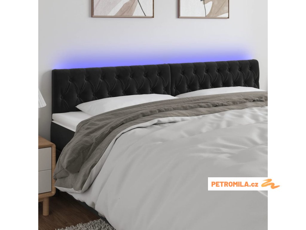Čelo postele s LED černé 180 x 7 x 78/88 cm samet