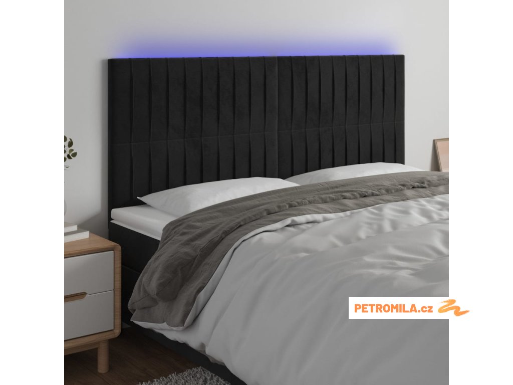 Čelo postele s LED černé 180x5x118/128 cm samet