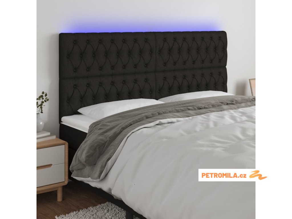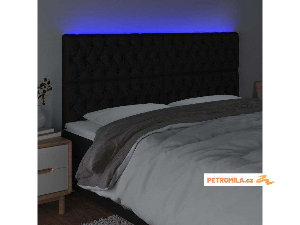 Čelo postele s LED černé 180x7x118/128 cm textil