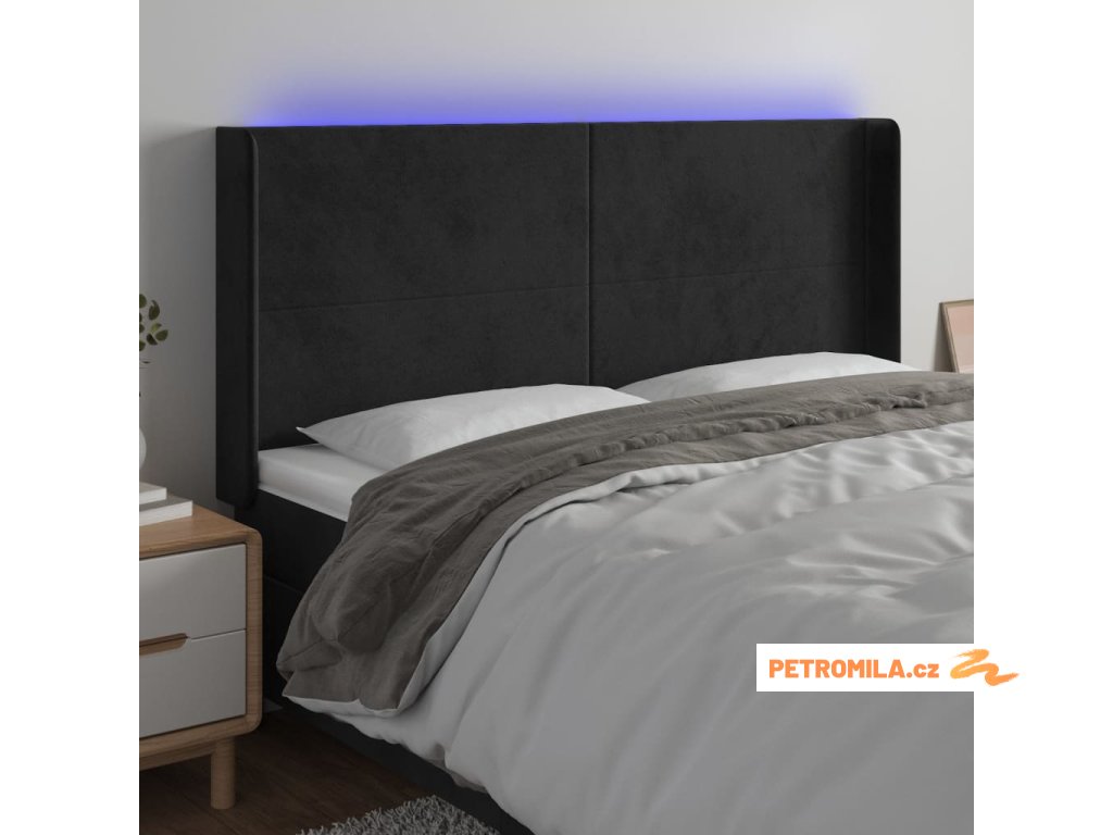 Čelo postele s LED černé 183 x 16 x 118/128 cm samet