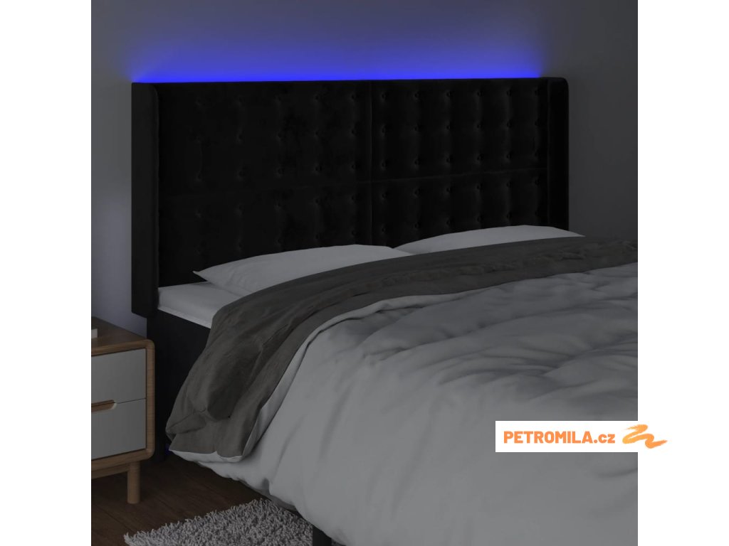 Čelo postele s LED černé 183 x 16 x 118/128 cm samet