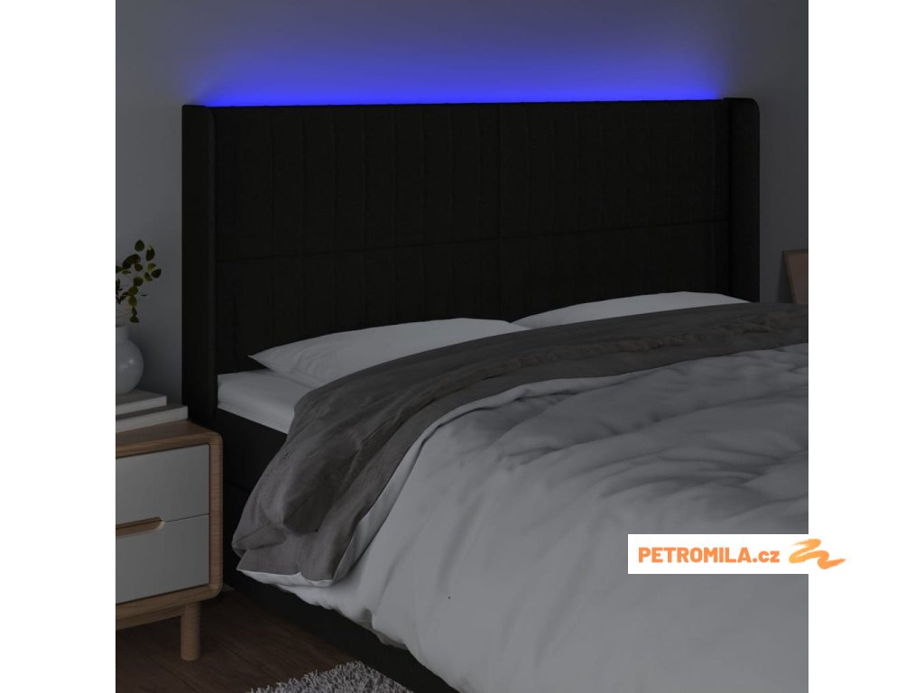 Čelo postele s LED černé 183 x 16 x 118/128 cm textil