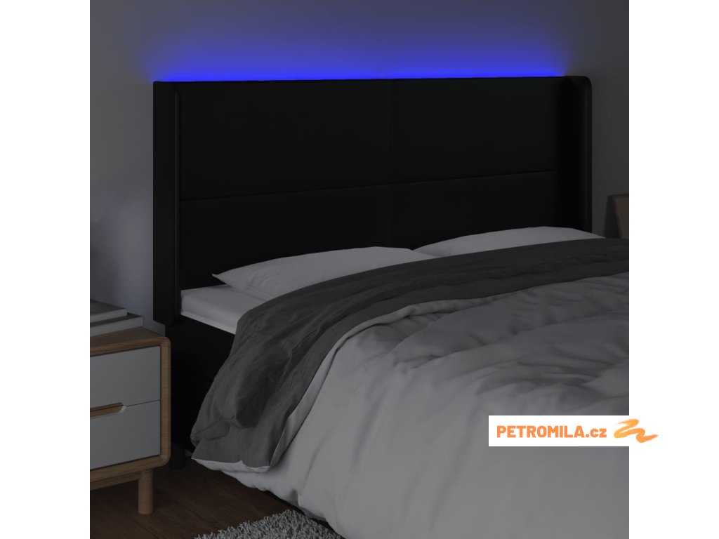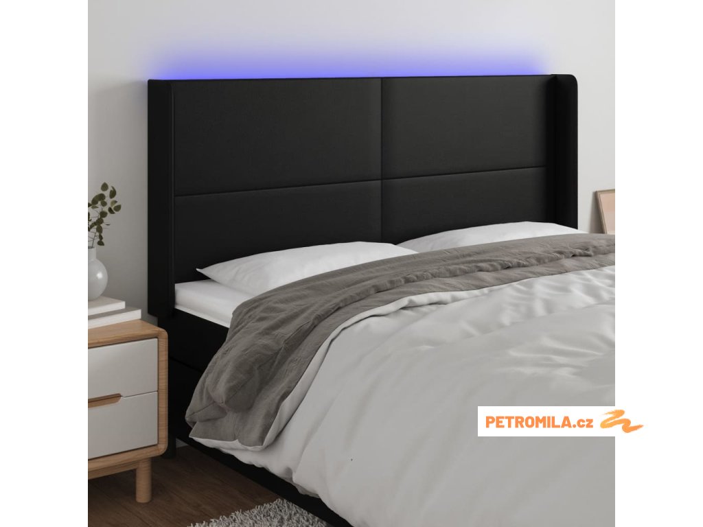 Čelo postele s LED černé 183 x 16 x 118/128 cm umělá kůže