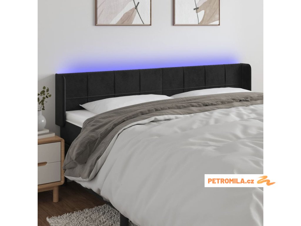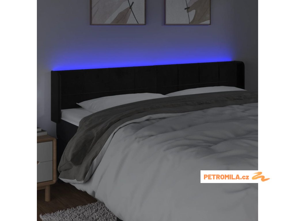 Čelo postele s LED černé 183 x 16 x 78/88 cm samet