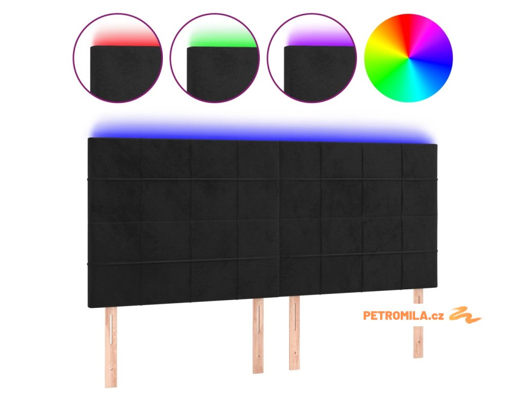 Čelo postele s LED černé 200x5x118/128 cm samet