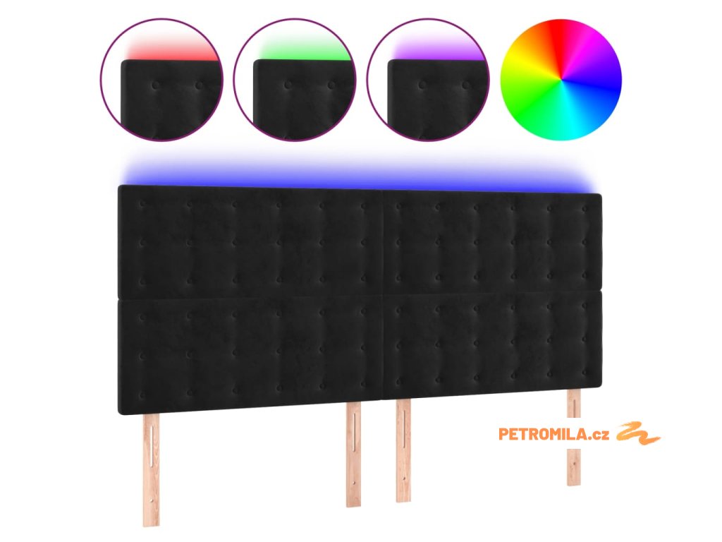 Čelo postele s LED černé 200x5x118/128 cm samet