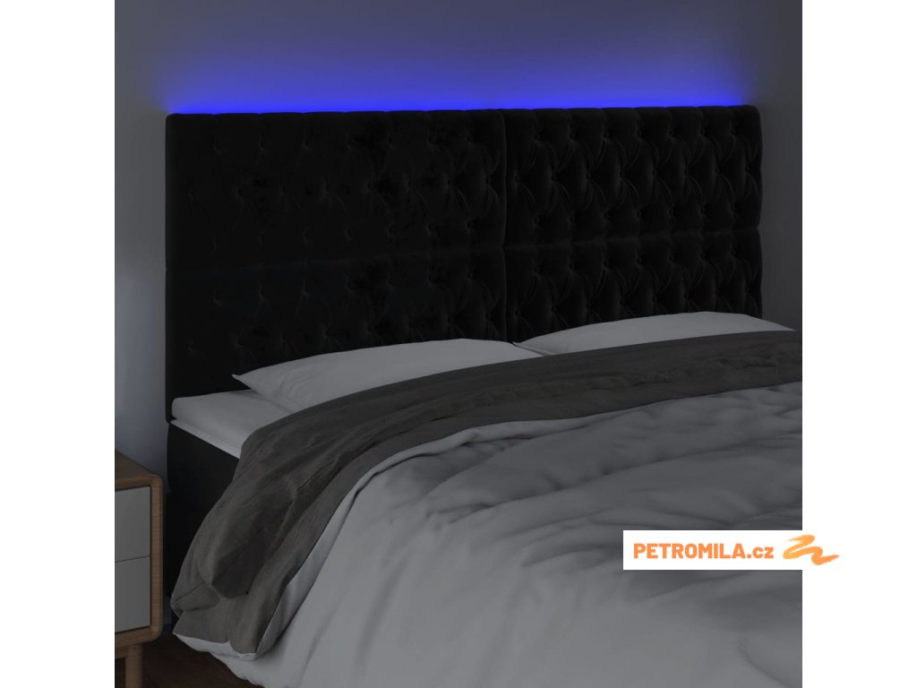 Čelo postele s LED černé 200x7x118/128 cm samet