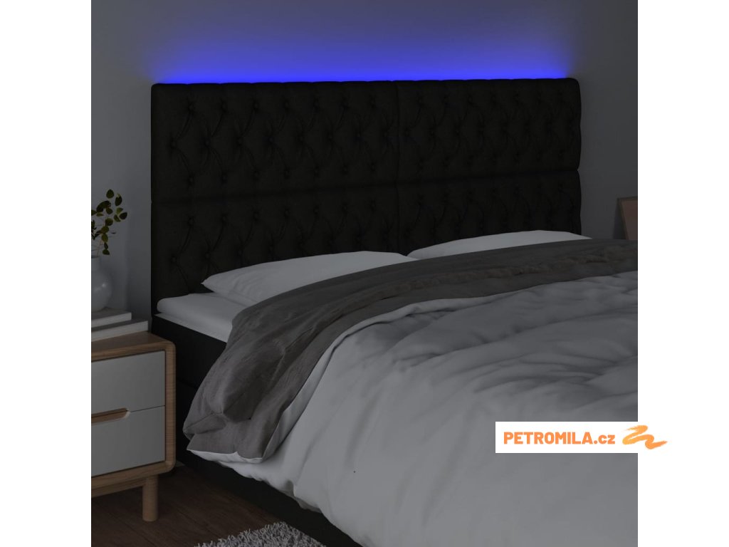 Čelo postele s LED černé 200x7x118/128 cm textil
