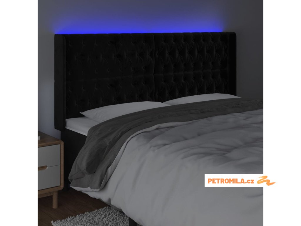 Čelo postele s LED černé 203 x 16 x 118/128 cm samet