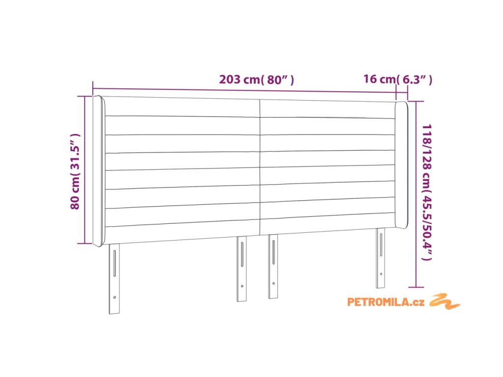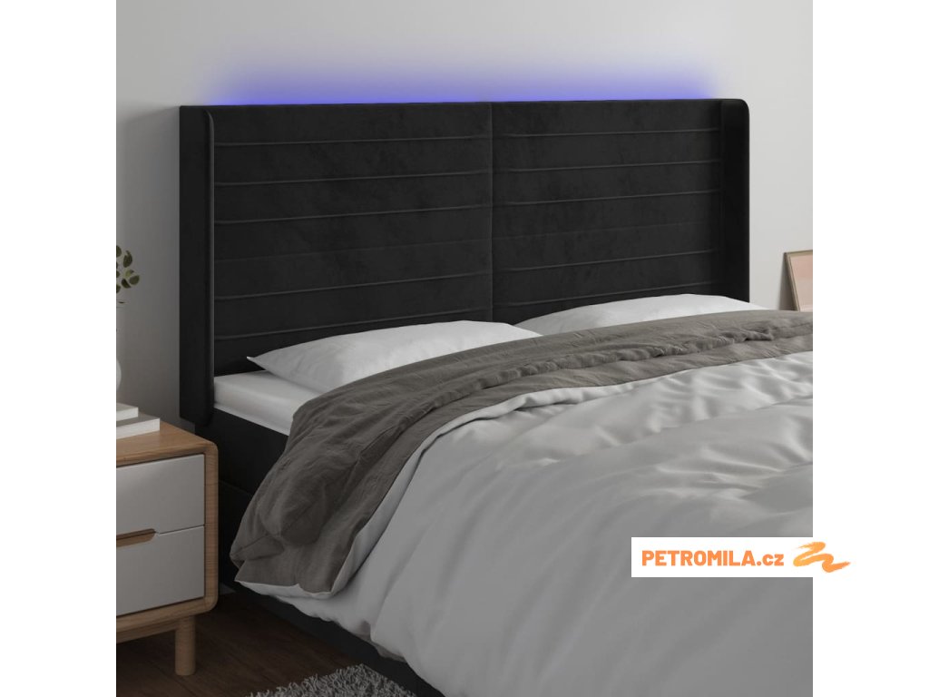 Čelo postele s LED černé 203 x 16 x 118/128 cm samet
