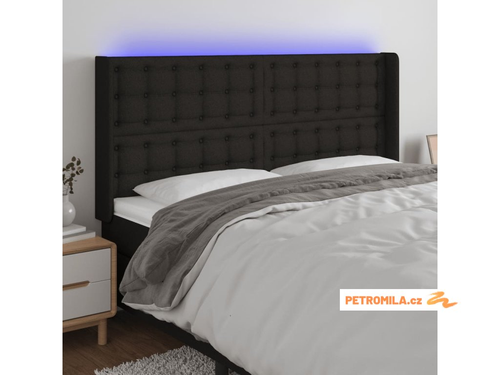 Čelo postele s LED černé 203 x 16 x 118/128 cm textil