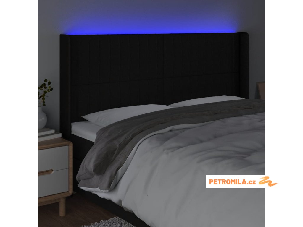 Čelo postele s LED černé 203 x 16 x 118/128 cm textil
