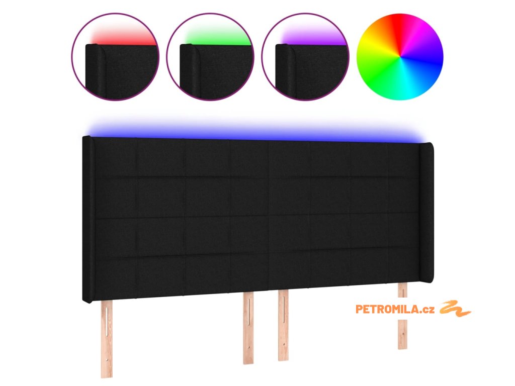 Čelo postele s LED černé 203 x 16 x 118/128 cm textil