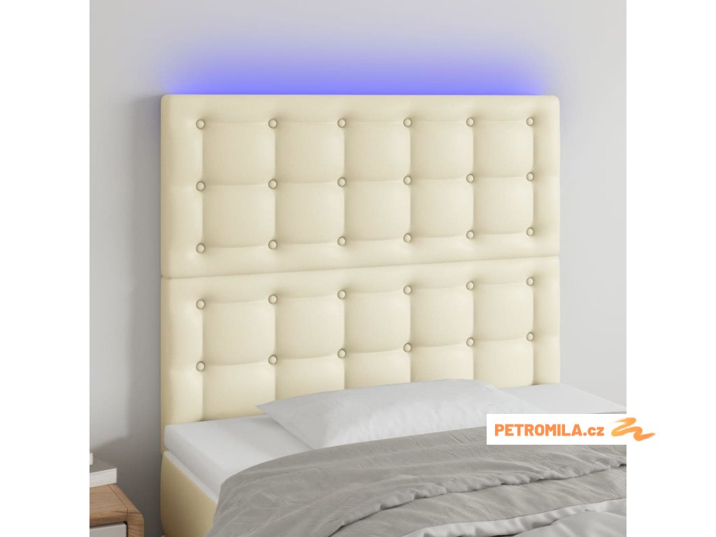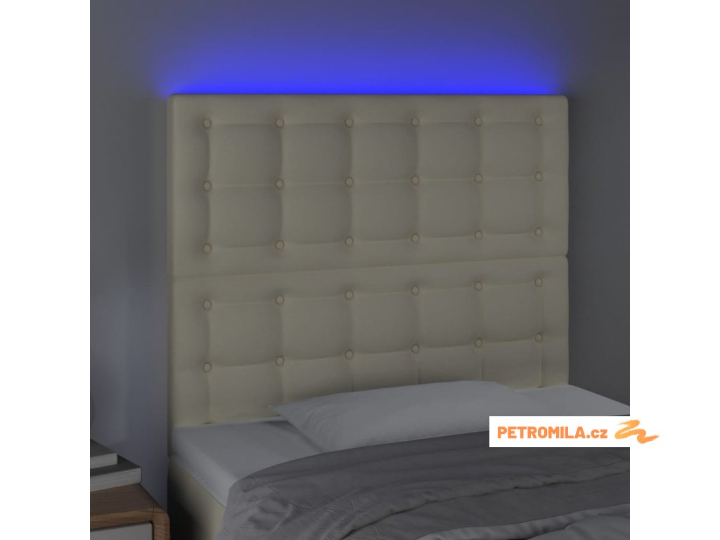 Čelo postele s LED krémové 100x5x118/128 cm umělá kůže