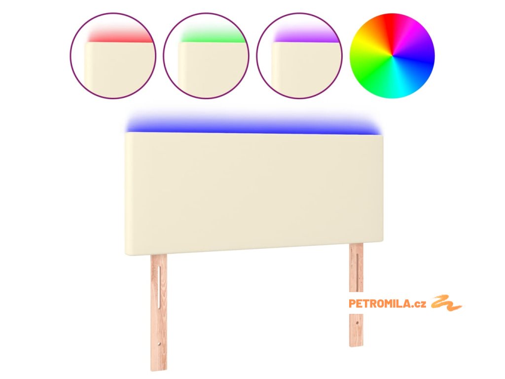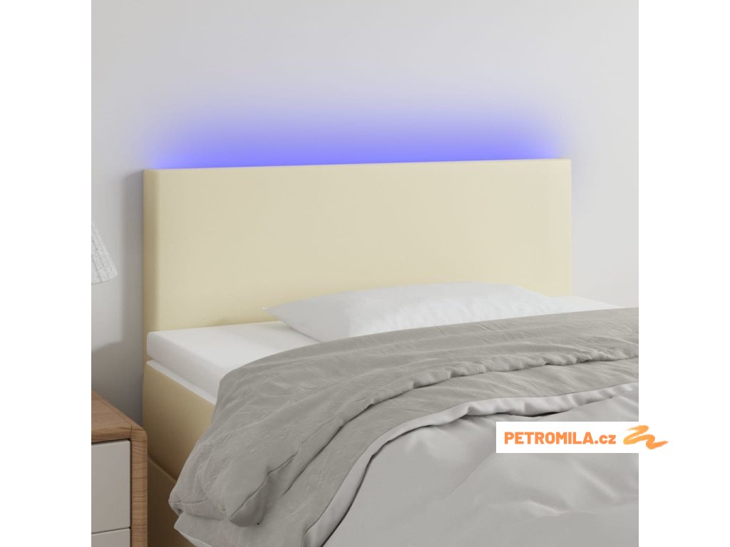 Čelo postele s LED krémové 100x5x78/88 cm umělá kůže