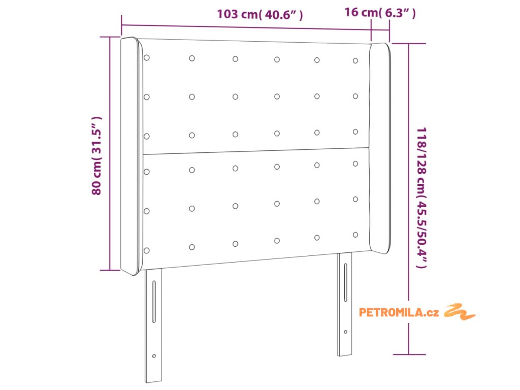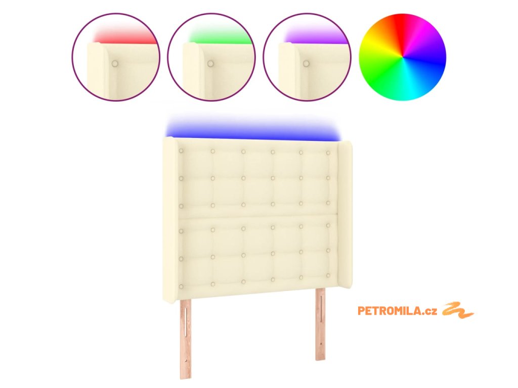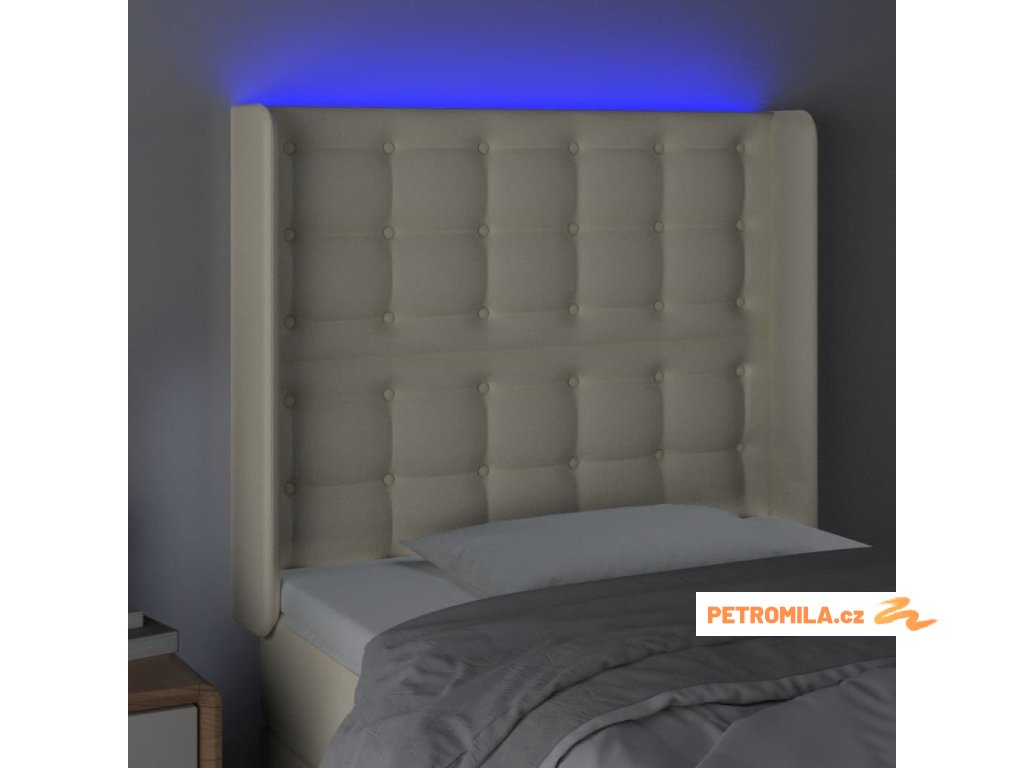 Čelo postele s LED krémové 103 x 16 x 118/128 cm umělá kůže