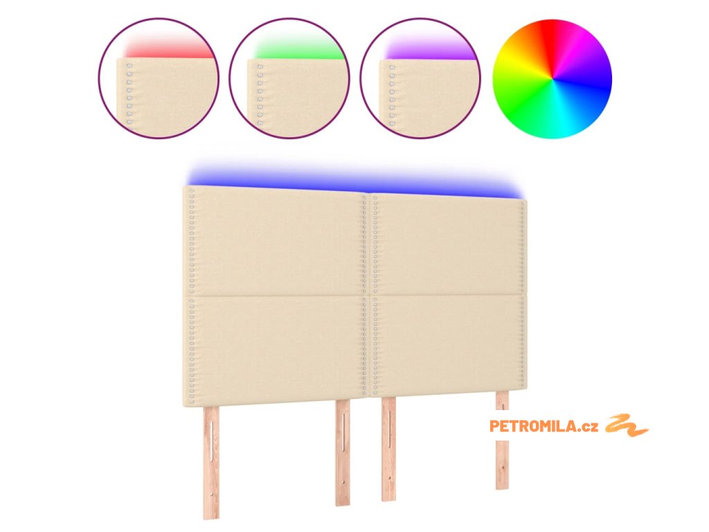 Čelo postele s LED krémové 144x5x118/128 cm textil