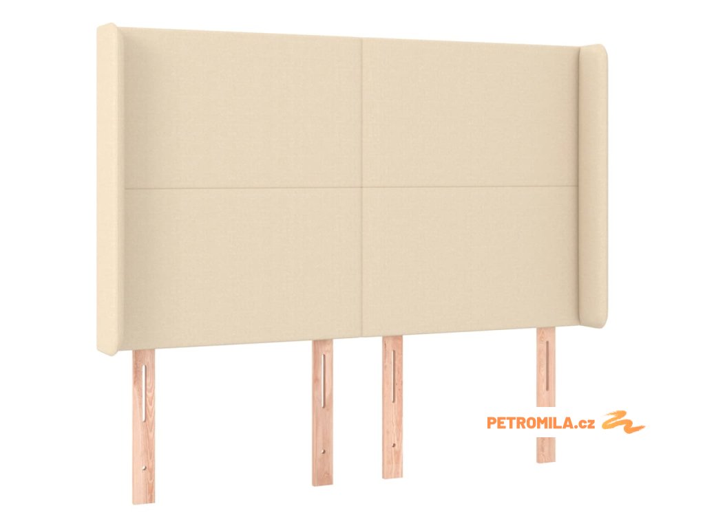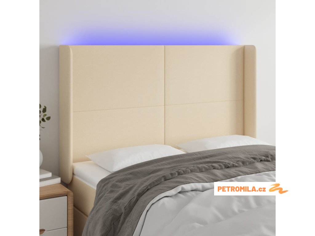 Čelo postele s LED krémové 147 x 16 x 118/128 cm textil