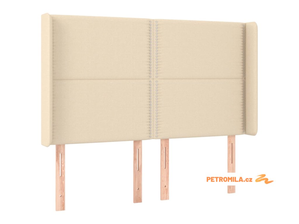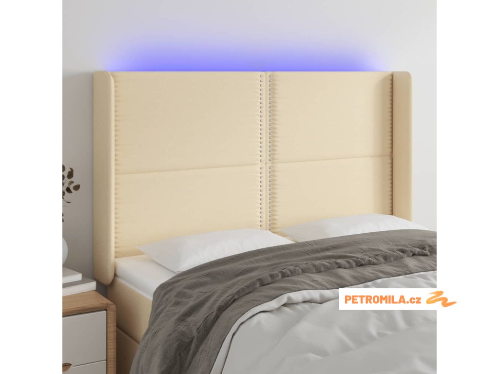 Čelo postele s LED krémové 147 x 16 x 118/128 cm textil