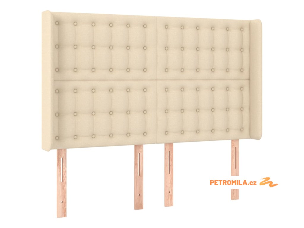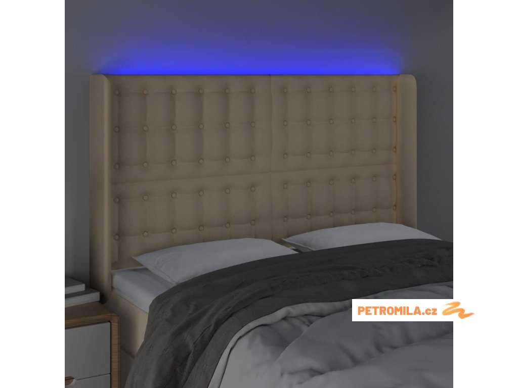 Čelo postele s LED krémové 147 x 16 x 118/128 cm textil