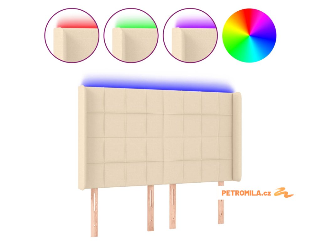 Čelo postele s LED krémové 147 x 16 x 118/128 cm textil