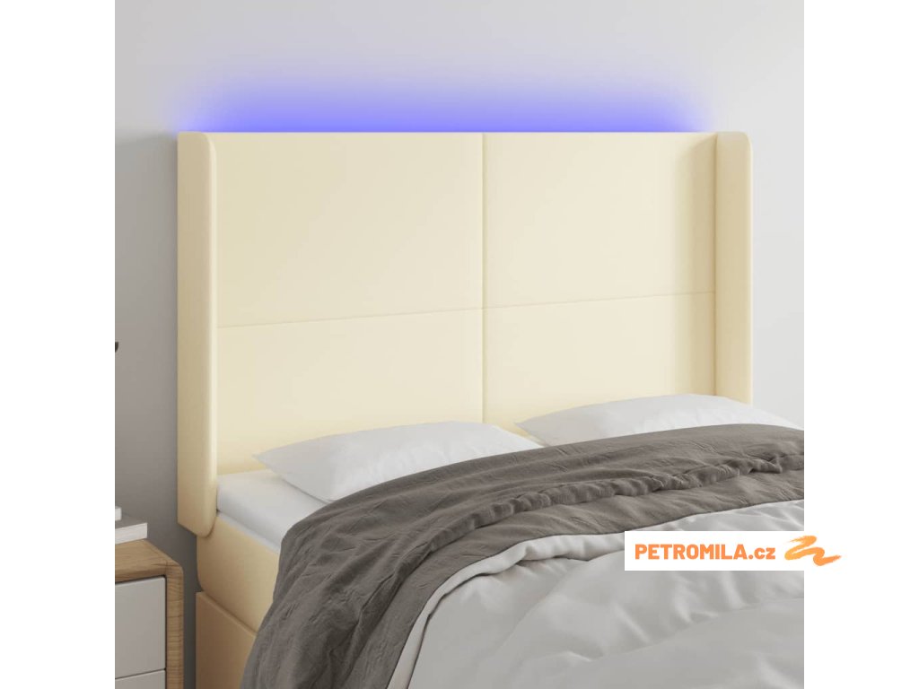 Čelo postele s LED krémové 147 x 16 x 118/128 cm umělá kůže