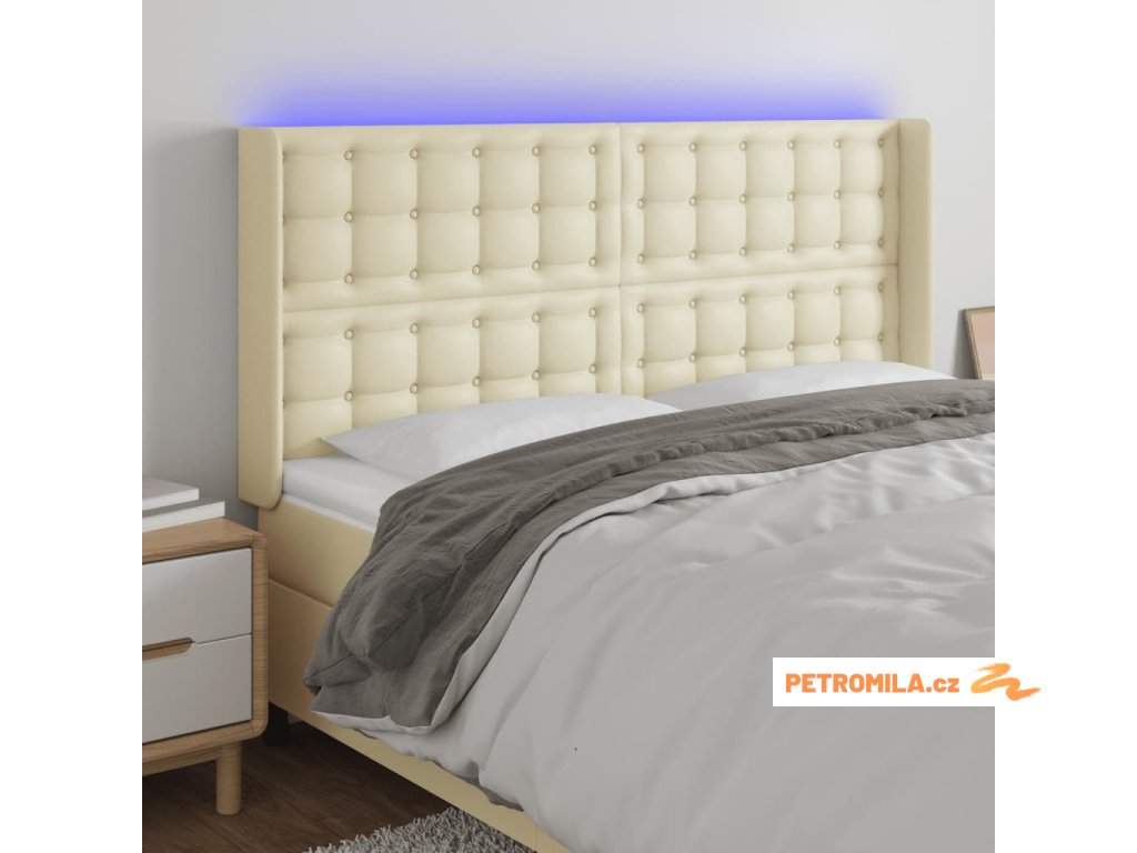 Čelo postele s LED krémové 147 x 16 x 118/128 cm umělá kůže