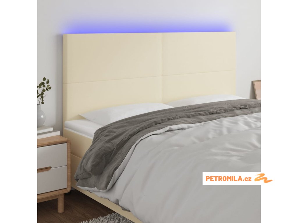 Čelo postele s LED krémové 160x5x118/128 cm umělá kůže