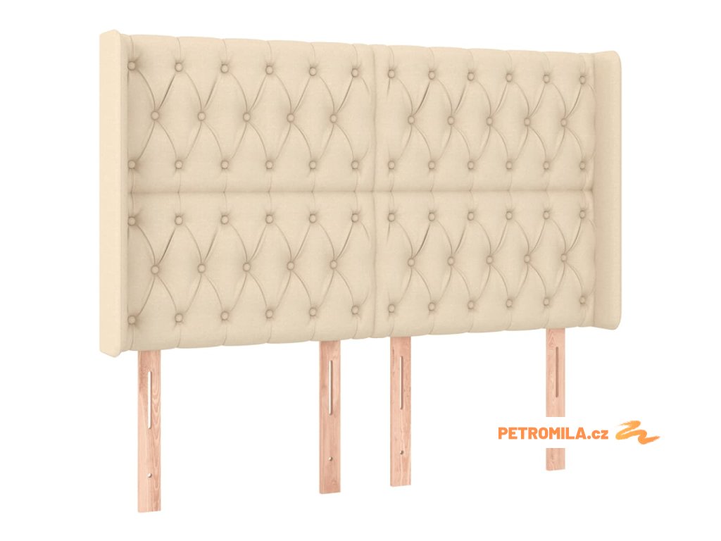 Čelo postele s LED krémové 163 x 16 x 118/128 cm textil