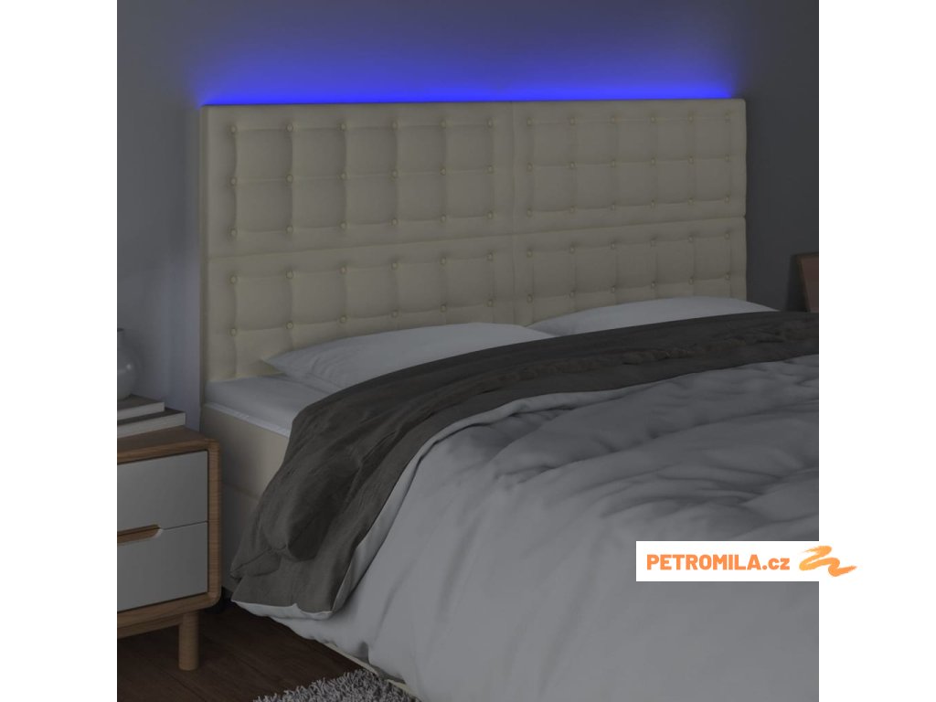 Čelo postele s LED krémové 180x5x118/128 cm umělá kůže