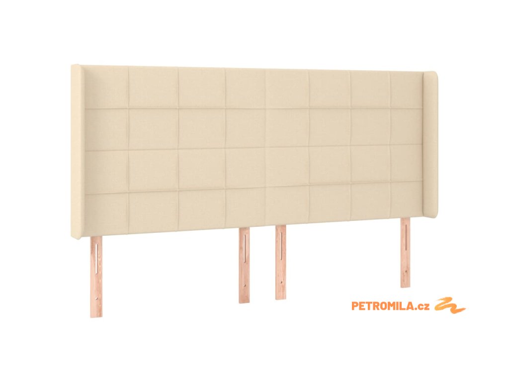 Čelo postele s LED krémové 183 x 16 x 118/128 cm textil